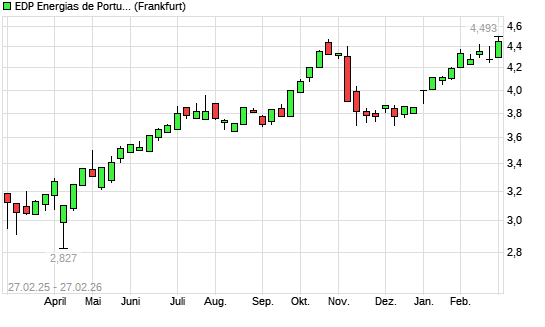 Mit dem Anstieg auf 4,49 EUR hat die EDP-Aktie (ISIN PTEDP0AM0009) am 26.02.2026 ein neues 12-Monats-Hoch erreicht und damit den Kurs vom 21.10.2025 eingestellt.