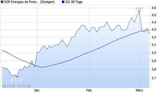 Mit dem Anstieg auf 4,29 EUR hat die EDP-Aktie am 06.03.2026 die 38-Tage-Linie nach oben gekreuzt.