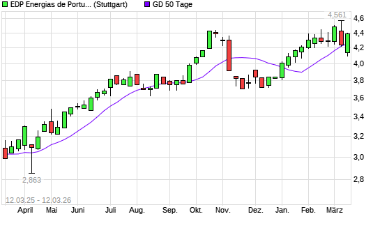 Mit dem Anstieg auf 4,29 EUR hat die EDP-Aktie am 11.03.2026 die 50-Tage-Linie nach oben gekreuzt.