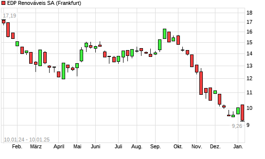 Mit dem Rücksetzer auf 9,31 EUR hat die EDP Renováveis-Aktie (ISIN ES0127797019) am 09.01.2025 ein neues 3-Jahres-Tief erreicht und damit den Kurs vom 23.12.2024 eingestellt.