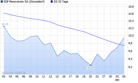 Mit dem Anstieg auf 10,02 EUR hat die EDP Renováveis-Aktie am 02.01.2025 die 20-Tage-Linie nach oben gekreuzt.