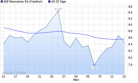 Mit dem Anstieg auf 8,66 EUR hat die EDP Renováveis-Aktie am 12.03.2025 die 20-Tage-Linie nach oben gekreuzt.