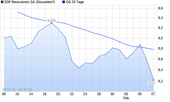 Mit dem Rücksetzer auf 8,82 EUR hat die EDP Renováveis-Aktie am 07.02.2025 die 20-Tage-Linie nach unten gekreuzt.