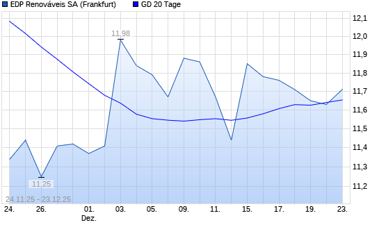 Mit dem Rücksetzer auf 11,63 EUR hat die EDP Renováveis-Aktie am 22.12.2025 die 20-Tage-Linie nach unten gekreuzt.
