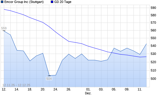 Mit dem Rücksetzer auf 527,20 EUR hat die EMCOR Group-Aktie am 11.12.2025 die 20-Tage-Linie nach unten gekreuzt.