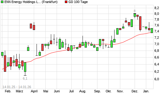 Mit dem Anstieg auf 7,45 EUR hat die ENN ENERGY HOLDINGS-Aktie am 13.01.2026 die 100-Tage-Linie nach oben gekreuzt.