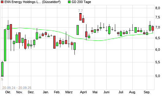 Mit dem Anstieg auf 7,10 EUR hat die ENN ENERGY HOLDINGS-Aktie am 19.09.2025 die 200-Tage-Linie nach oben gekreuzt.