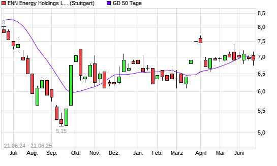 Mit dem Anstieg auf 7,00 EUR hat die ENN ENERGY HOLDINGS-Aktie am 20.06.2025 die 50-Tage-Linie nach oben gekreuzt.
