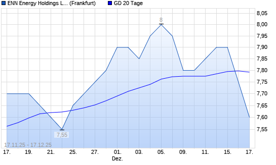 Mit dem Rücksetzer auf 7,75 EUR hat die ENN ENERGY HOLDINGS-Aktie am 16.12.2025 die 20-Tage-Linie nach unten gekreuzt.