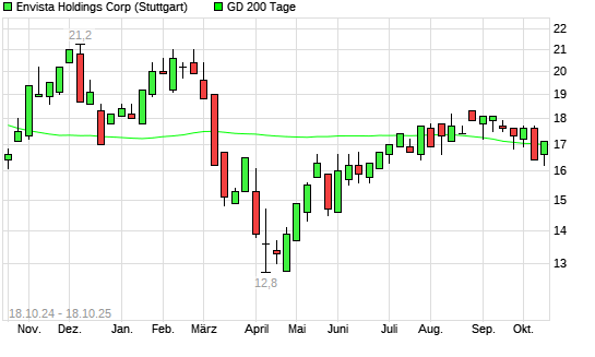 Mit dem Anstieg auf 17,10 EUR hat die ENVISTA HOLDINGS-Aktie am 17.10.2025 die 200-Tage-Linie nach oben gekreuzt.