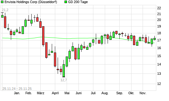 Mit dem Anstieg auf 17,60 EUR hat die ENVISTA HOLDINGS-Aktie am 24.11.2025 die 200-Tage-Linie nach oben gekreuzt.