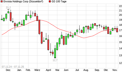 Mit dem Rücksetzer auf 16,80 EUR hat die ENVISTA HOLDINGS-Aktie am 06.11.2025 die 100-Tage-Linie nach unten gekreuzt.