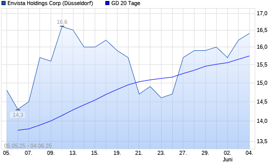 Mit dem Rücksetzer auf 15,50 EUR hat die ENVISTA HOLDINGS-Aktie am 03.06.2025 die 20-Tage-Linie nach unten gekreuzt.