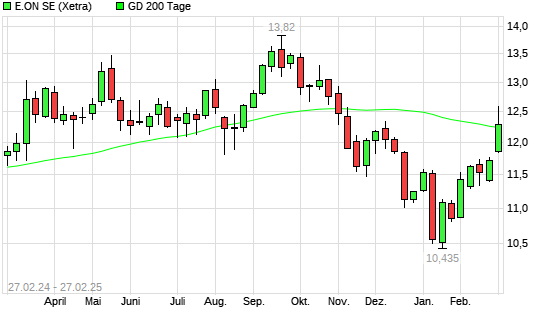 Mit dem Anstieg auf 12,38 EUR hat die E.ON-Aktie am 26.02.2025 die 200-Tage-Linie nach oben gekreuzt.