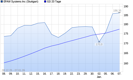Mit dem Anstieg auf 185,80 EUR hat die EPAM Systems-Aktie am 06.01.2026 die 20-Tage-Linie nach oben gekreuzt.