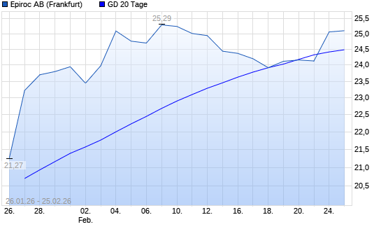 Mit dem Anstieg auf 25,06 EUR hat die EPIROC AB A-Aktie am 24.02.2026 die 20-Tage-Linie nach oben gekreuzt.
