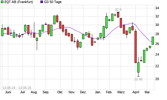 Mit dem Anstieg auf 26,91 EUR hat die EQT AB-Aktie am 12.05.2025 die 50-Tage-Linie nach oben gekreuzt.