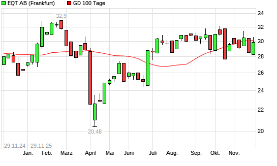 Mit dem Rücksetzer auf 29,83 EUR hat die EQT AB-Aktie am 28.11.2025 die 100-Tage-Linie nach unten gekreuzt.
