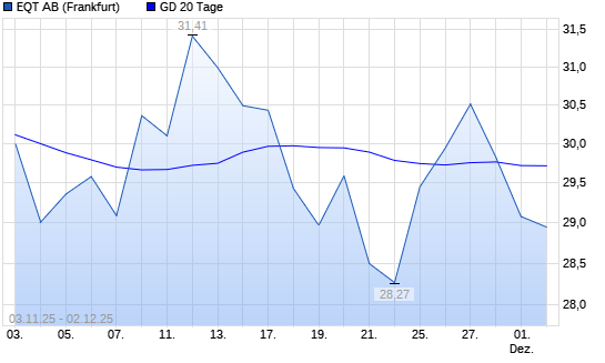 Mit dem Rücksetzer auf 29,08 EUR hat die EQT AB-Aktie am 01.12.2025 die 20-Tage-Linie nach unten gekreuzt.