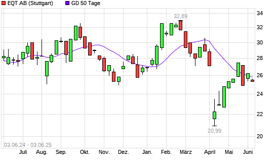 Mit dem Rücksetzer auf 25,35 EUR hat die EQT AB-Aktie am 02.06.2025 die 50-Tage-Linie nach unten gekreuzt.