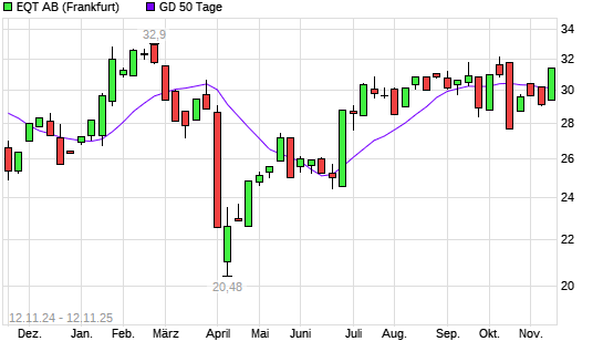 Mit dem Rücksetzer auf 30,10 EUR hat die EQT AB-Aktie am 11.11.2025 die 50-Tage-Linie nach unten gekreuzt.
