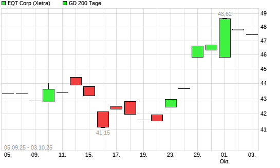 Mit dem Anstieg auf 48,16 EUR hat die EQT-Aktie am 02.10.2025 die 200-Tage-Linie nach oben gekreuzt.