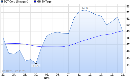 Mit dem Rücksetzer auf 48,63 EUR hat die EQT-Aktie am 21.11.2025 die 20-Tage-Linie nach unten gekreuzt.