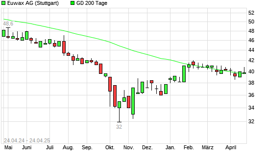 Mit dem Anstieg auf 40,60 EUR hat die EUWAX-Aktie am 23.04.2025 die 200-Tage-Linie nach oben gekreuzt.