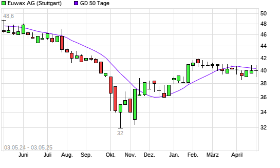 Mit dem Anstieg auf 40,80 EUR hat die EUWAX-Aktie am 02.05.2025 die 50-Tage-Linie nach oben gekreuzt.