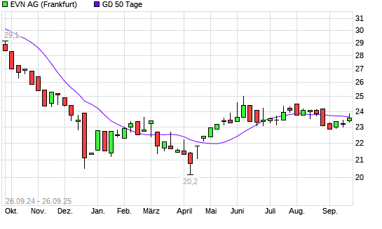Mit dem Anstieg auf 23,65 EUR hat die EVN-Aktie am 25.09.2025 die 50-Tage-Linie nach oben gekreuzt.