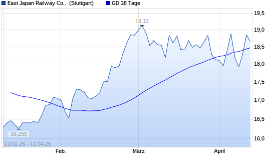Mit dem Anstieg auf 19,07 EUR hat die East Japan Railway-Aktie am 10.04.2025 die 38-Tage-Linie nach oben gekreuzt.