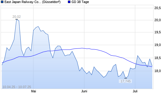 Mit dem Anstieg auf 18,31 EUR hat die East Japan Railway-Aktie am 09.07.2025 die 38-Tage-Linie nach oben gekreuzt.