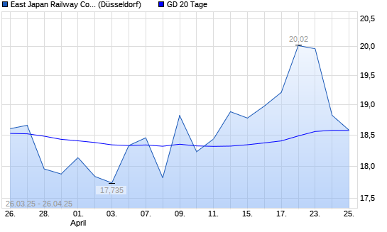Mit dem Rücksetzer auf 18,71 EUR hat die East Japan Railway-Aktie am 25.04.2025 die 20-Tage-Linie nach unten gekreuzt.