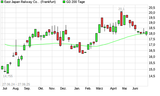 Mit dem Rücksetzer auf 17,81 EUR hat die East Japan Railway-Aktie am 26.06.2025 die 200-Tage-Linie nach unten gekreuzt.