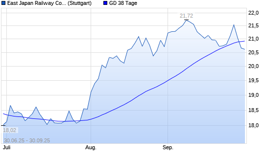 Mit dem Rücksetzer auf 20,69 EUR hat die East Japan Railway-Aktie am 29.09.2025 die 38-Tage-Linie nach unten gekreuzt.Die East Japan Railway-Aktie befindet sich seit dem 27.06.2025 im langfristigen ...weiterlesen