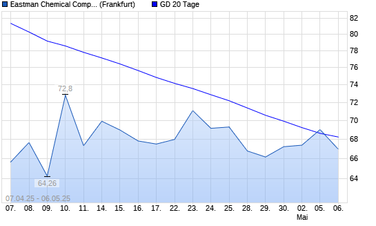 Mit dem Anstieg auf 69,04 EUR hat die Eastman Chemical Company-Aktie am 05.05.2025 die 20-Tage-Linie nach oben gekreuzt.