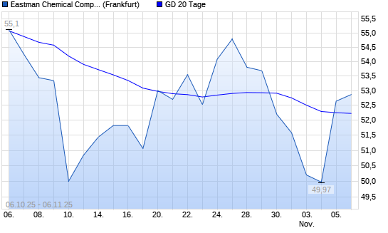 Mit dem Anstieg auf 52,64 EUR hat die Eastman Chemical Company-Aktie am 05.11.2025 die 20-Tage-Linie nach oben gekreuzt.