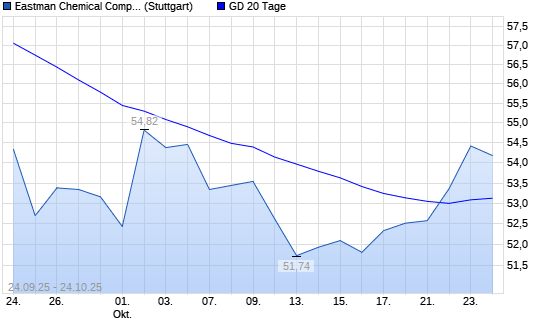 Mit dem Rücksetzer auf 52,52 EUR hat die Eastman Chemical Company-Aktie am 23.10.2025 die 20-Tage-Linie nach unten gekreuzt.