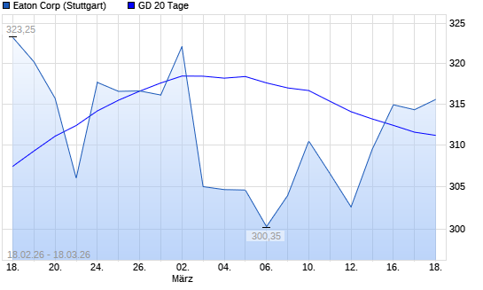 Mit dem Anstieg auf 316,20 EUR hat die Eaton-Aktie am 17.03.2026 die 20-Tage-Linie nach oben gekreuzt.