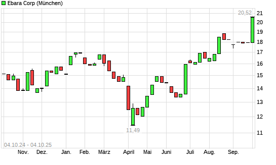 Mit dem Anstieg auf 20,26 EUR hat die Ebara-Aktie (ISIN JP3166000004) am 03.10.2025 ein neues All-Time-High erreicht und damit den Kurs vom 02.10.2025 eingestellt.