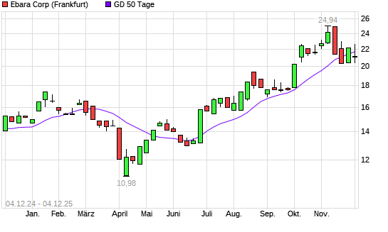 Mit dem Anstieg auf 21,74 EUR hat die Ebara-Aktie am 03.12.2025 die 50-Tage-Linie nach oben gekreuzt.