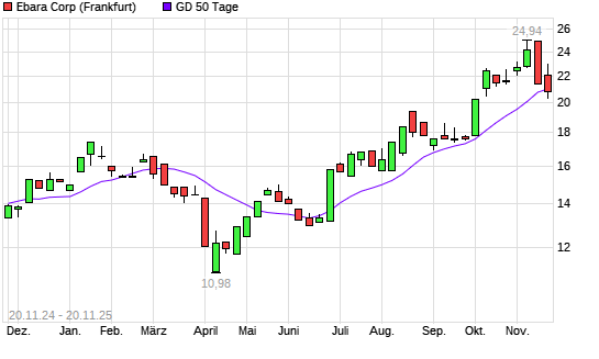 Mit dem Rücksetzer auf 20,36 EUR hat die Ebara-Aktie am 19.11.2025 die 50-Tage-Linie nach unten gekreuzt.