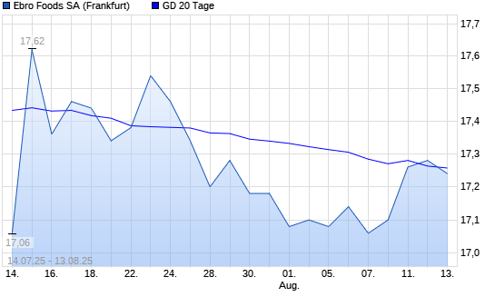 Mit dem Anstieg auf 17,28 EUR hat die Ebro Foods-Aktie am 12.08.2025 die 20-Tage-Linie nach oben gekreuzt.