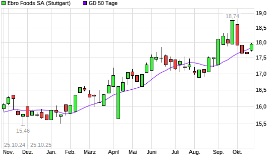 Mit dem Anstieg auf 18,14 EUR hat die Ebro Foods-Aktie am 24.10.2025 die 50-Tage-Linie nach oben gekreuzt.
