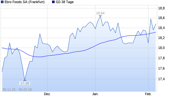 Mit dem Rücksetzer auf 18,36 EUR hat die Ebro Foods-Aktie am 04.02.2026 die 38-Tage-Linie nach unten gekreuzt.