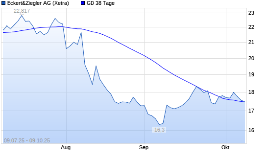 Mit dem Rücksetzer auf 17,45 EUR hat die Eckert&Ziegler-Aktie am 08.10.2025 die 38-Tage-Linie nach unten gekreuzt.