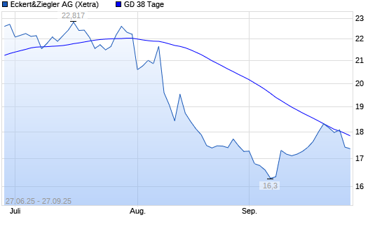 Mit dem Rücksetzer auf 17,50 EUR hat die Eckert&Ziegler-Aktie am 26.09.2025 die 38-Tage-Linie nach unten gekreuzt.Die Eckert&Ziegler-Aktie befindet sich seit dem 18.08.2025 im langfristigen ...weiterlesen