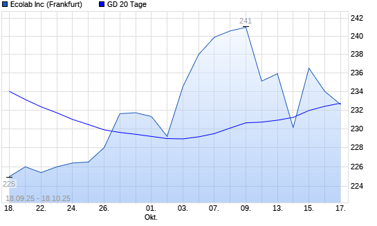 Mit dem Rücksetzer auf 232,60 EUR hat die Ecolab-Aktie am 17.10.2025 die 20-Tage-Linie nach unten gekreuzt.