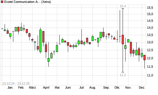 Mit dem Rücksetzer auf 11,00 EUR hat die Ecotel Communication-Aktie (ISIN DE0005854343) am 12.12.2025 ein neues 6-Monats-Tief erreicht und damit den Kurs vom 11.12.2025 eingestellt.