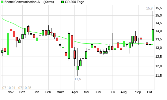 Mit dem Rücksetzer auf 12,50 EUR hat die Ecotel Communication-Aktie am 06.10.2025 die 200-Tage-Linie nach unten gekreuzt.